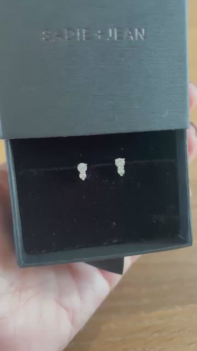 Each earring features one larger and one smaller stone, creating a delicate sense of movement and an elegant, balanced silhouette.